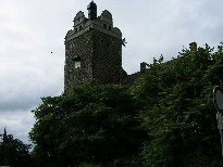 Der er ingen by, men en stor parkeringsplads. Man kan gå op til borgen eller køre med en Bimmelbahn (lille tog som det der kører på Strøget i København). |